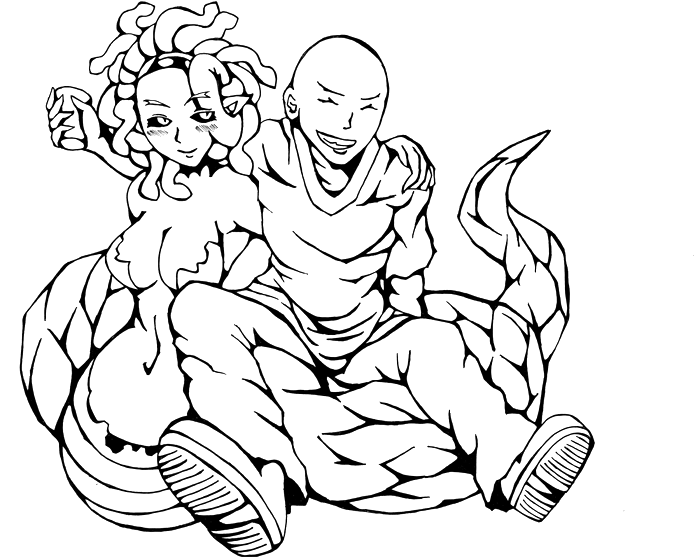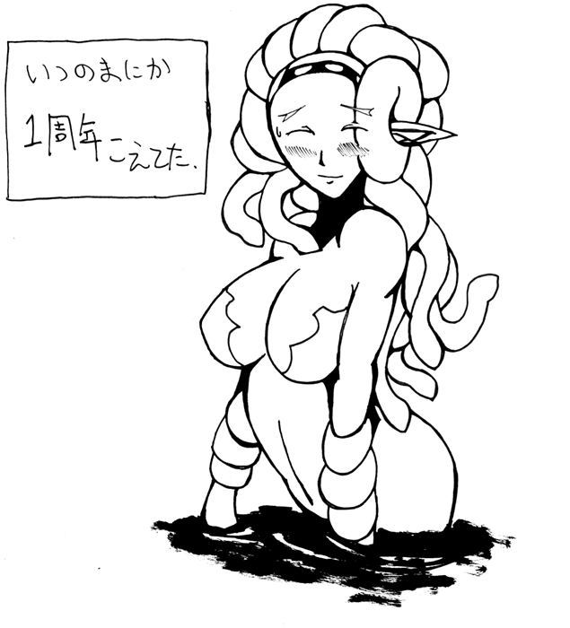 嘘ですYO!本当はこっちですYO! いやぁ、テスト勉強の息抜きに描いたんですけどね。 看板娘がまた顔が変わってますね。もーどうしようもありません。 東山は誰だかわかりませんね。もうちっと眉毛が太かった・・・・・かな? まぁその辺は今の俺にはどうしようも出来ないので置いといて、 それよりも・・・東山は・・・・・蛇は大丈夫なのだろうか・・・・? てかその前にモンスター娘を見てどう思うんだ・・・・? そしてここまでフレンドリーなのだろうか・・・・? まぁ東山のことだから何でもありでしょう! 彼のことだからきっと人外娘でも(ry