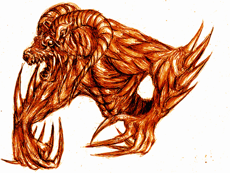 5時間にも及ぶ死闘の中、やっとこさ正常なモンスターが描けました。 そしてバイキングは幸せに暮らしたとさ。 めでたしめでたし。 おしまい。